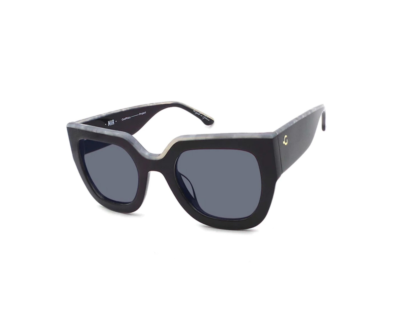 Elegante montura de acetato negra de alta calidad, con lentes polarizadas de categoría 3. En la parte superior posee una línea en tonalidad gris que le aporta mucha luminosidad.